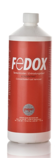 FeDOX Rust Removal Treatment Fedox is a compound specifically developed for cleaning of steel and the inside of fuel tanks and acts as a preparation for Fertan surface protection. With Fedox even heavy corrosion will be removed leaving steel and tanks bright and rust free. Product contains wetting agent and biodegradable surfactant in aqueous solution. UK DELIVERY ONLY |