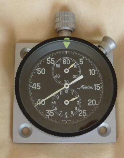 Minerva 12 hour dash mounted stopwatch - Rally Timer New old stock, in box and in perfect working order. Rotating bezel, looks to be the same movement as the Heuer Autavia. |