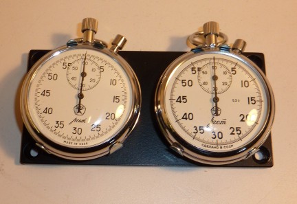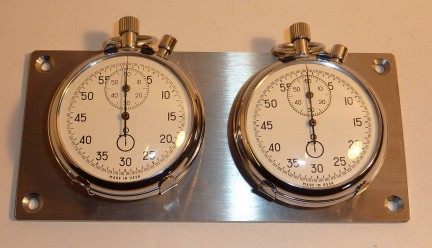 Twin stainless steel backplate for 2" stopwatches. Adjustable stopwatch clips on machined