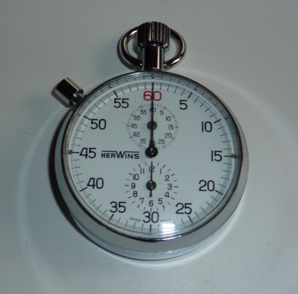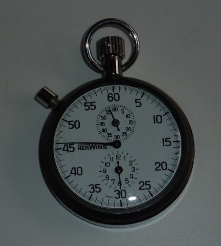 Herwins Swiss mechanical stopwatch. Black bezel. Rally timer - 60 min and 12 hour