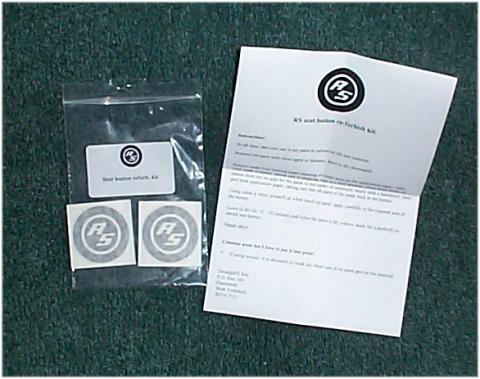A pair of vinyl masks which will bring back to life your old buttons! Simply clean old paint off, apply mask and re-spray.